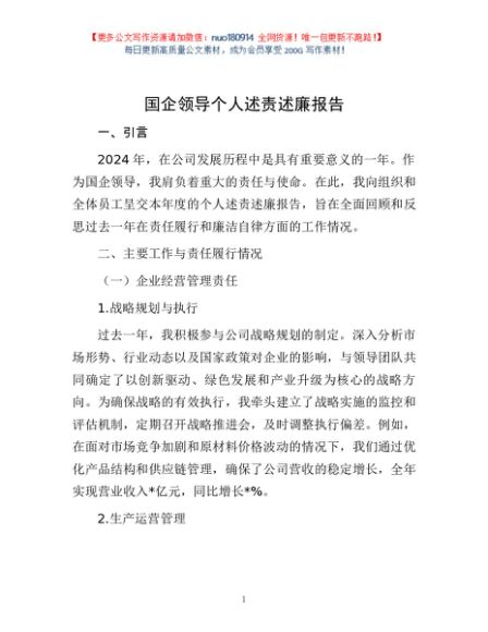 / 国企领导个人述责述廉报告