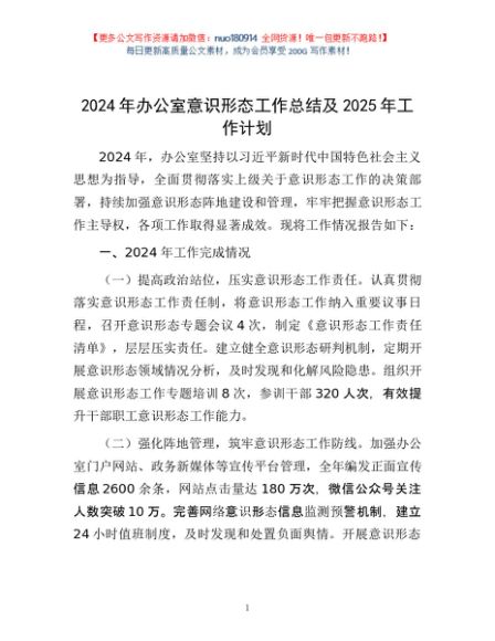 2024年办公室意识形态工作总结及2025年工作计划