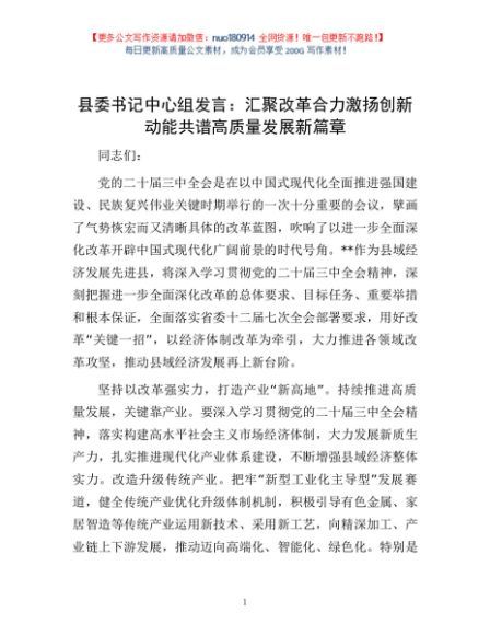 / 县委书记中心组发言:汇聚改革合力 激扬创新动能 共谱高质量发展新篇章