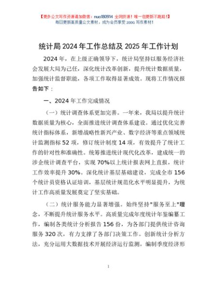 / 统计局2024年工作总结及2025年工作计划