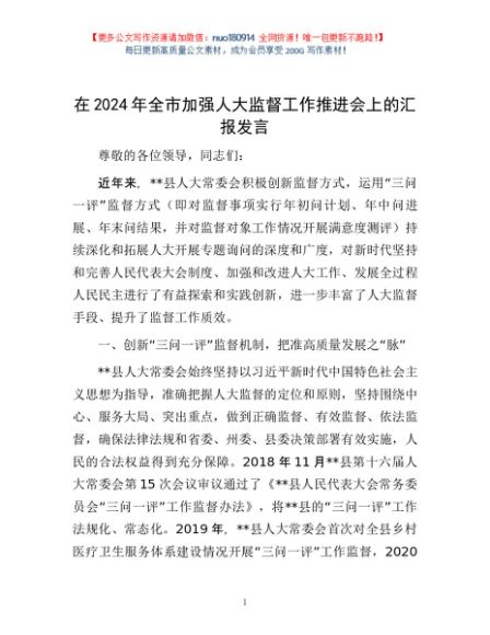 / 在2024年全市加强人大监督工作推进会上的汇报发言