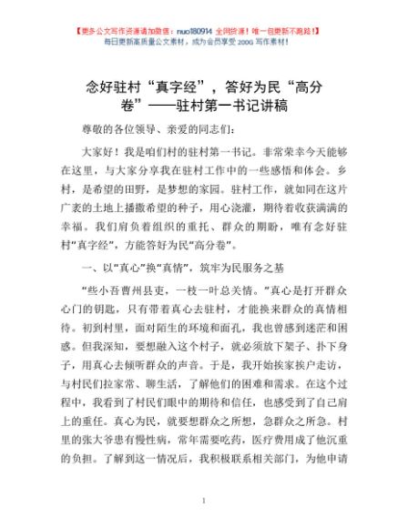 / 念好驻村“真字经”,答好为民“高分卷”——驻村第一书记讲稿