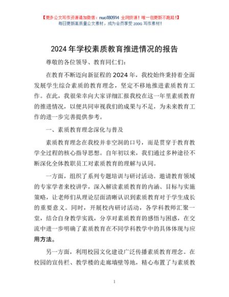 / 2024 年学校素质教育推进情况的报告