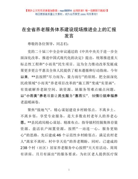 / 在全省养老服务体系建设现场推进会上的汇报发言