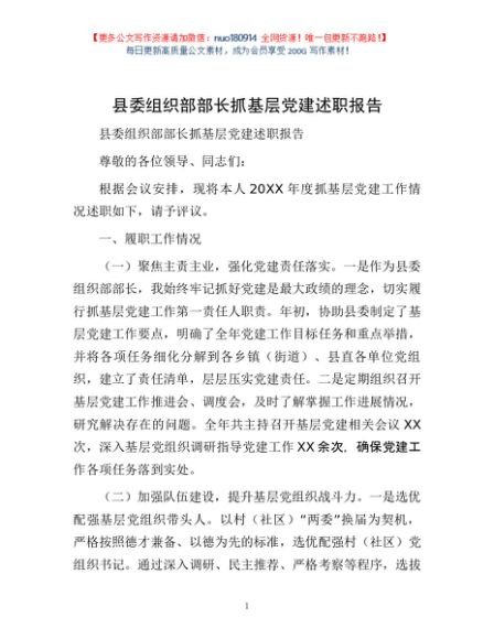 / 县委组织部部长抓基层党建述职报告