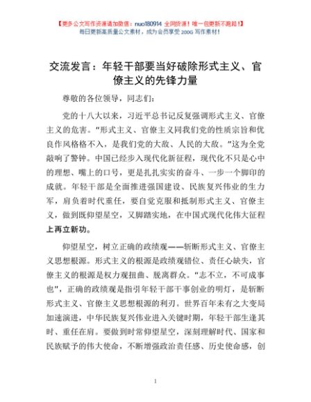 / 交流发言:年轻干部要当好破除形式主义、官僚主义的先锋力量