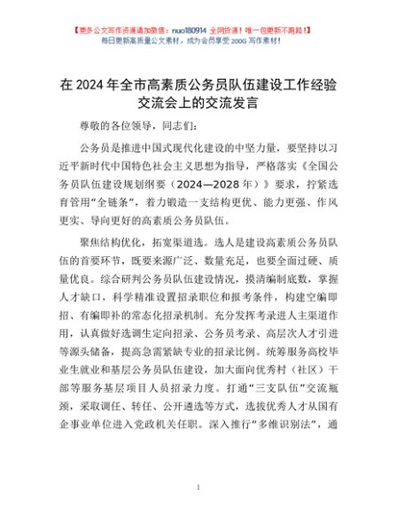 / 在2024年全市高素质公务员队伍建设工作经验交流会上的交流发言