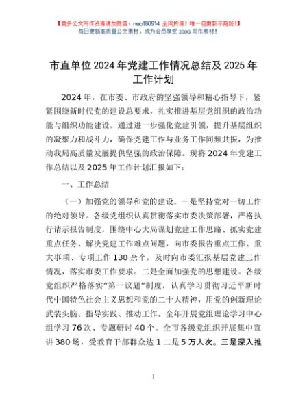 / 市直单位2024年党建工作情况总结及2025年工作计划