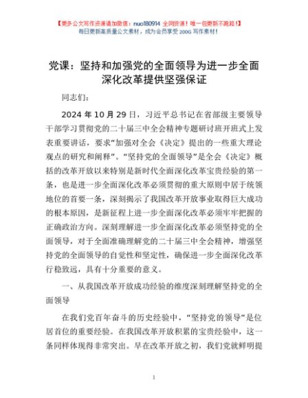 / 党课:坚持和加强党的全面领导 为进一步全面深化改革提供坚强保证