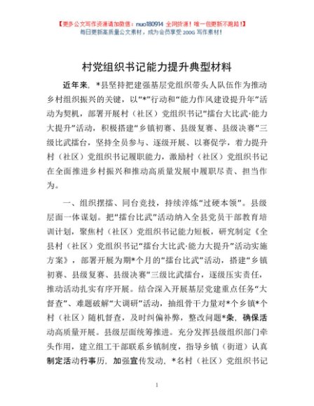 / 村党组织书记能力提升典型材料