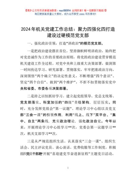 / 2024年机关党建工作总结:聚力四强化四打造 建设过硬模范党支部