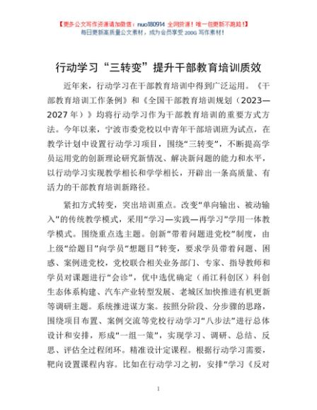 / 行动学习“三转变”提升干部教育培训质效