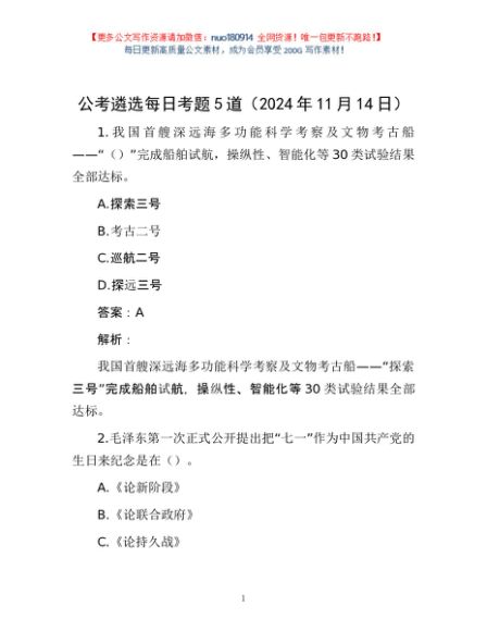 / 公考遴选每日考题5道(2024年11月14日)