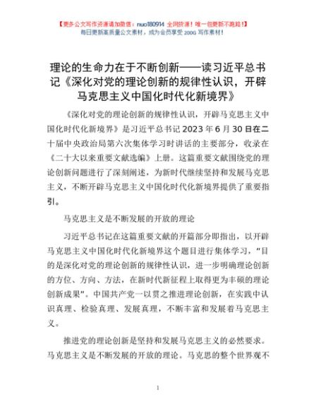 理论的生命力在于不断创新——读习近平总书记《深化对党的理论创新的规律性认识,开辟马克思主义中国化时代化新境界》