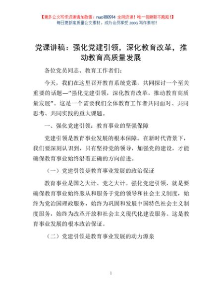 / 党课讲稿:强化党建引领,深化教育改革,推动教育高质量发展