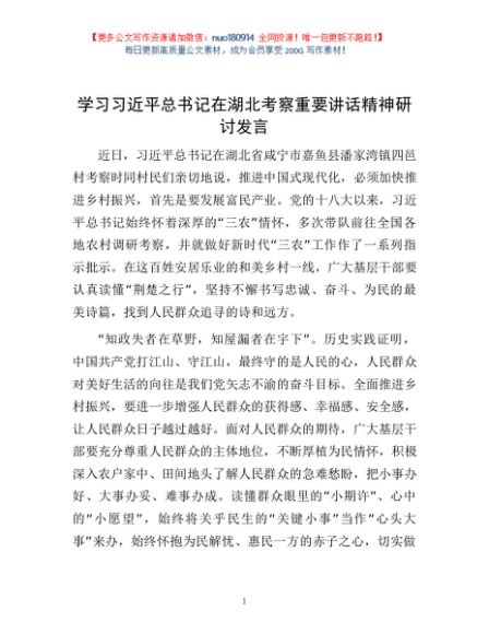 / 学习习近平总书记在湖北考察重要讲话精神研讨发言