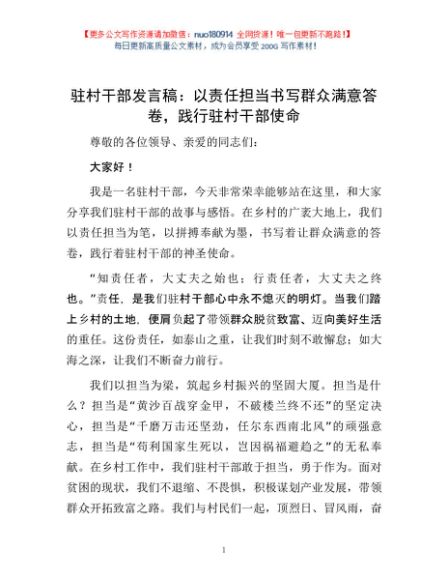 / 驻村干部发言稿:以责任担当书写群众满意答卷,践行驻村干部使命