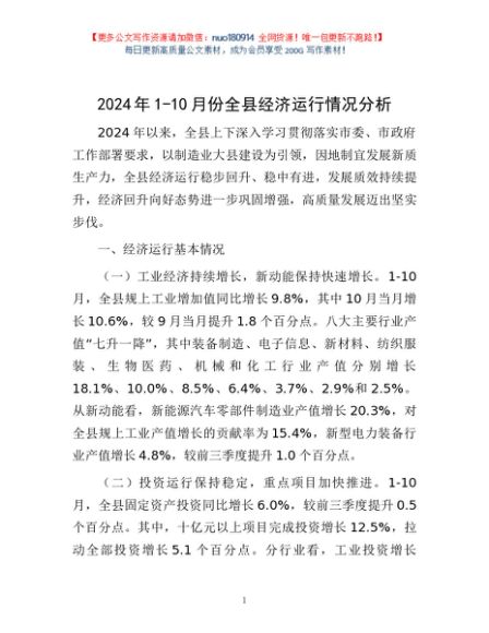 2024年1-10月份全县经济运行情况分析