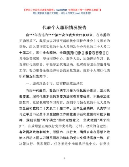 / 代表个人履职情况报告