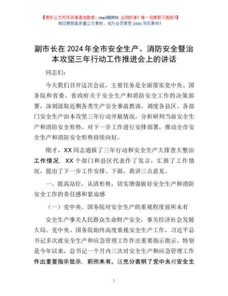 / 副市长在2024年全市安全生产、消防安全暨治本攻坚三年行动工作推进会上的讲话