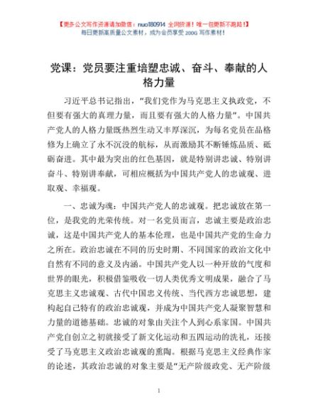 / 党课:党员要注重培塑忠诚、奋斗、奉献的人格力量