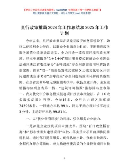 / 县行政审批局2024年工作总结和2025年工作计划