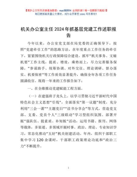 / 机关办公室主任2024年抓基层党建工作述职报告