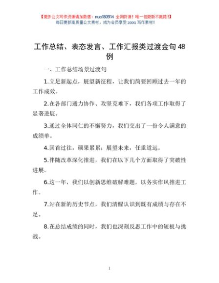 / 工作总结、表态发言、工作汇报类过渡金句48例