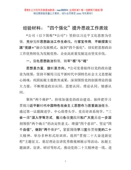 / 经验材料:“四个强化”提升思政工作质效