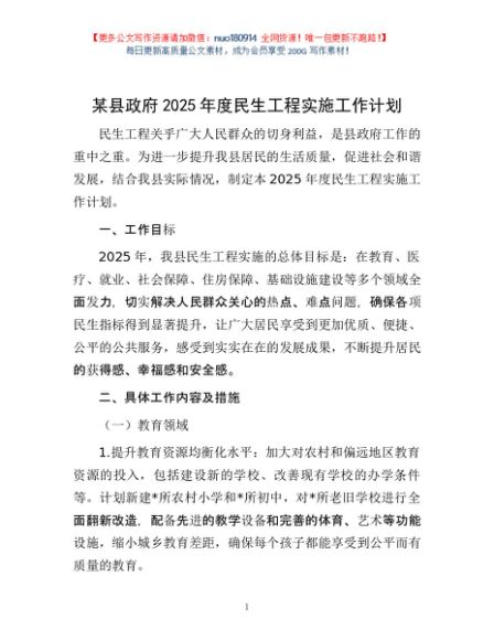 / 某县政府2025年度民生工程实施工作计划