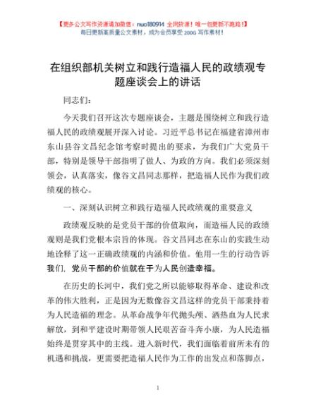 / 在组织部机关树立和践行造福人民的政绩观专题座谈会上的讲话