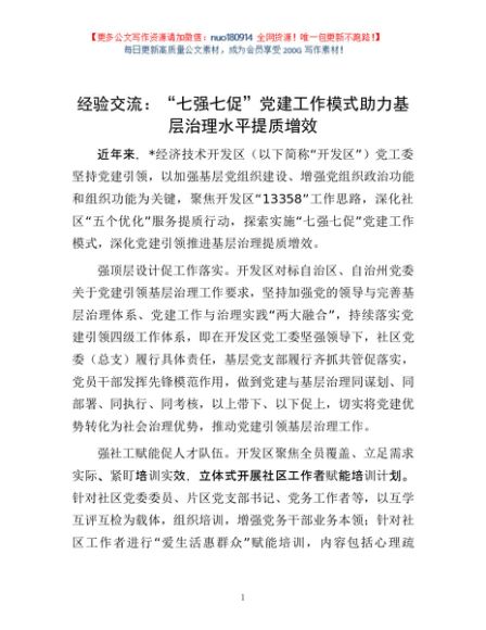 / 经验交流:“七强七促”党建工作模式 助力基层治理水平提质增效