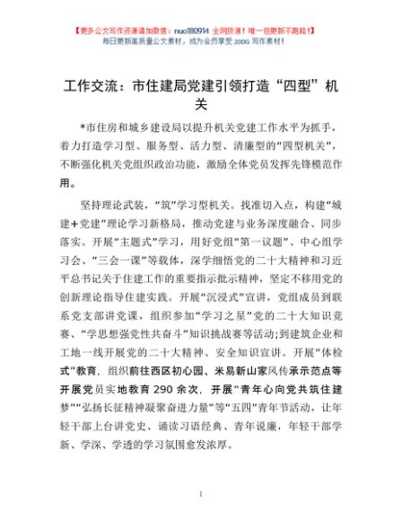 / 工作交流:市住建局党建引领打造“四型”机关