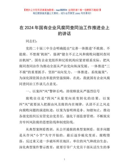 / 在2024年国有企业风腐同查同治工作推进会上的讲话