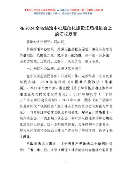 / 在2024全省综治中心规范化建设现场推进会上的汇报发言