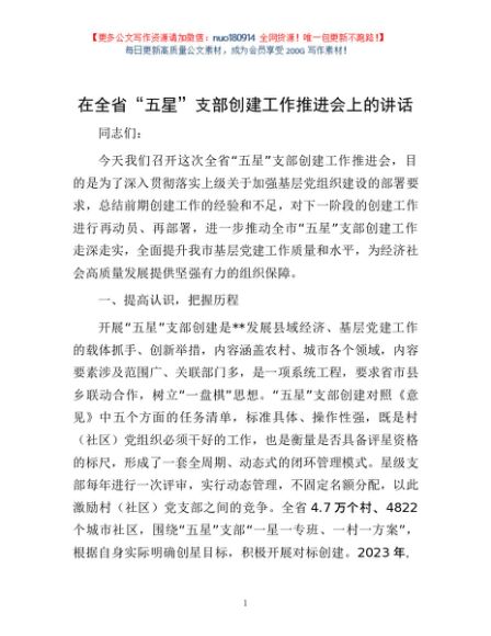 / 在全省“五星”支部创建工作推进会上的讲话