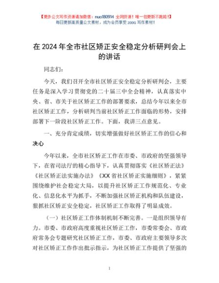 / 在2024年全市社区矫正安全稳定分析研判会上的讲话