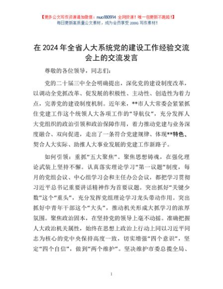/ 在2024年全省人大系统党的建设工作经验交流会上的交流发言