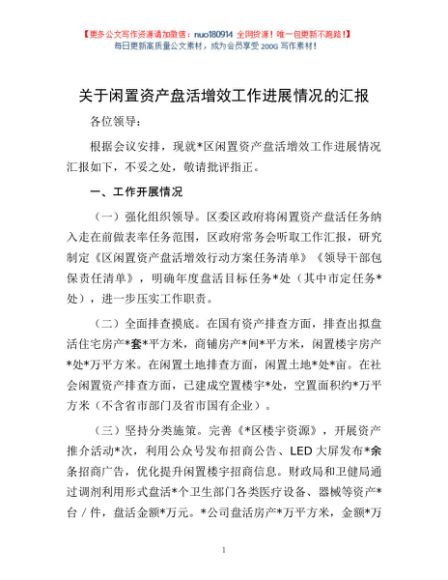 / 关于闲置资产盘活增效工作进展情况的汇报