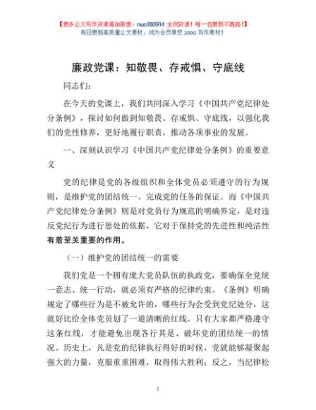 / 廉政党课:知敬畏、存戒惧、守底线