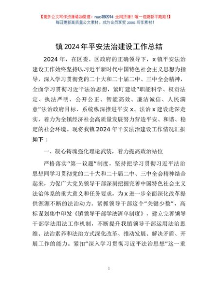 / 镇2024年平安法治建设工作总结