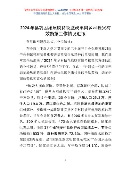 / 2024年县巩固拓展脱贫攻坚成果同乡村振兴有效衔接工作情况汇报