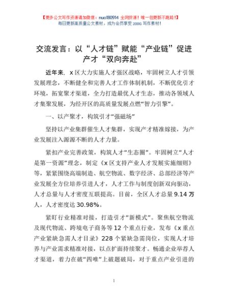 / 交流发言:以“人才链”赋能“产业链”促进产才“双向奔赴”