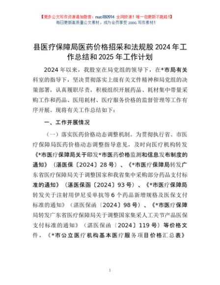 / 县医疗保障局医药价格招采和法规股2024年工作总结和2025年工作计划