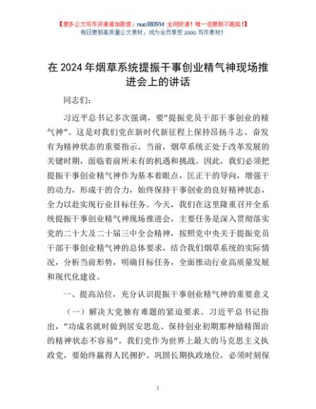 / 在2024年烟草系统提振干事创业精气神现场推进会上的讲话