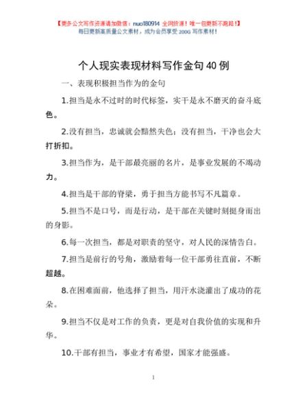 / 个人现实表现材料写作金句40例