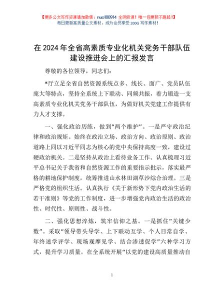 / 在2024年全省高素质专业化机关党务干部队伍建设推进会上的汇报发言