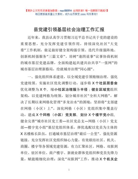/ 县党建引领基层社会治理工作汇报