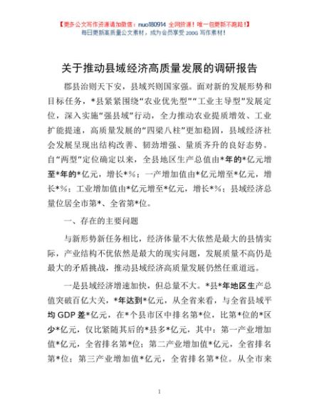 / 关于推动县域经济高质量发展的调研报告