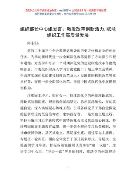/ 组织部长中心组发言:激发改革创新活力,赋能组织工作高质量发展
